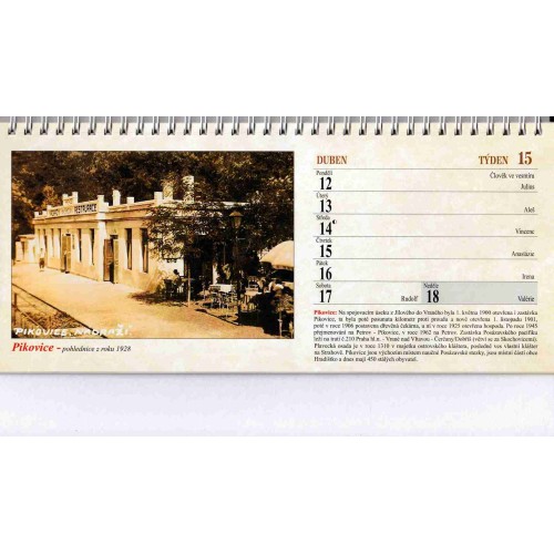 Stolní kalendář 30x17 cm, 53 kolorovaných fotografií starých pohlednic s doplňujícími informacemi, jmenný kalendář